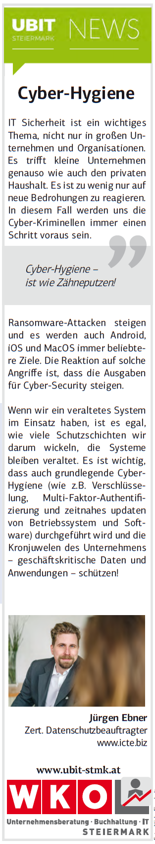 In der immer mehr von IT getriebenen Welt, in denen Unternehmen mobile Endgeräte und Cloud-Lösungen intensiv nutzen, ist der Schutz der Daten immer komplexer und kritischer und bedarf der Unterstützung von Experten. Da nicht jeder einen Experten im Unternehmen beschäftigen kann, unterstütze ich vor allem Kleinst- und Kleinunternehmen sich den digitalen Gefahren wie Viren, Cybervandalismus aber auch dem Löschen oder Verändern von Daten zu stellen.